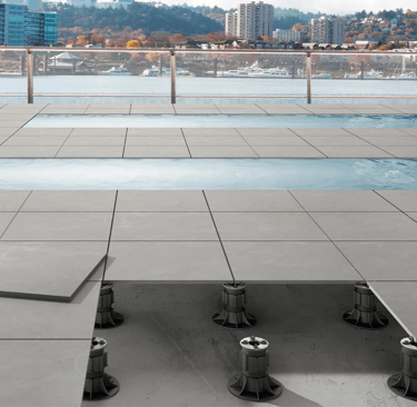Raised tile / paver floors are becoming increasingly popular in the building industry, as they provide a number of immediate benefits that simply aren’t available when using a conventional laying method or other type of deck. The ability of maintaining slopes for drainage, the lighter weight and quicker installation time, the lack of a requirement for a sand and cement bed and the ability to keep waterproof membranes separate and visible makes too much sense.