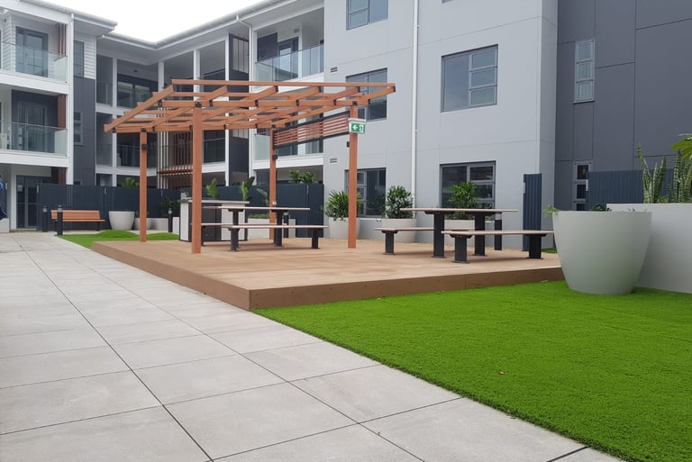 Timber or composite decks are not the only options available when choosing your raised floor / external deck. Other options include artificial grass, bamboo and tiles. Each option has advantages and disadvantages.